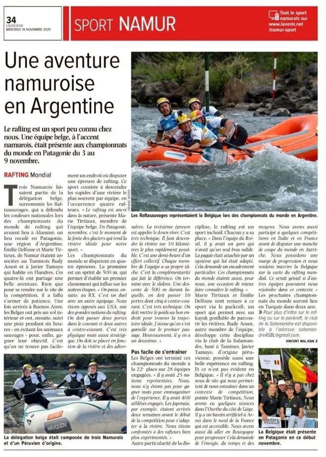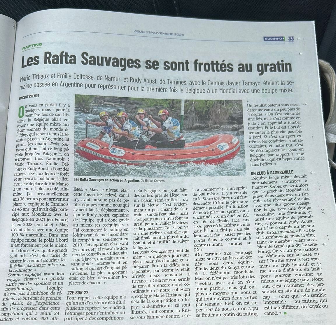 L’Avenir s’est intéressé à l’expérience que nous avons vécues dans le rapides bourguignons du Chalaux et à la victoire d’Emilie dans le cadre de cette première édition des championnats de Belgique de Packraft !